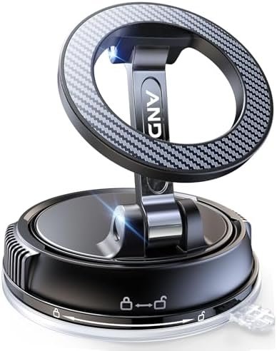 About this item 360° Rotation & Dual-Axis Adjustment: This car phone holder features a 360° rotating base and 210° dual-axis folding metal arms, allowing easy angle adjustments to suit your needs. Whether in the car or at the office, switch between portrait and landscape modes effortlessly. Its unique folding design reduces the mount’s size by 50% when not in use, keeping your space tidy. Tested over 3000 times for durability, it remains stable and reliable for long-term use. (Protected by US Design Patent No. US D1,076,905 S) Strong Suction & Stable Hold: This car phone mount uses advanced rotating-lock vacuum suction, boosting suction by 45% compared to traditional press-on mounts. It stays stable on bumpy roads or during sudden stops. The 4-layer high-strength nano gel suction cup supports up to 78lbs and holds firm in extreme temperatures (-40°F to 300°F). After 9999+ durability tests and 200+ reattachments, it can be cleaned and regain 99% of its suction power for lasting stability. Stronger Magnetic Force: With 22 high-performance N55 magnets, this mount’s magnetic strength is 200% stronger than standard magnets, providing a top-tier hold with up to 2400gf of force. It can support the weight of up to 50 phones. After 5000 vibration tests and extreme road simulations, your phone stays secure during bumps, sudden stops, or sharp turns. The precise magnetic design ensures strong adhesion without disrupting phone signals for clear navigation and calls. Circular Cooling Design: This magnetic phone holder for cars features a unique circular vent design that reduces contact between your phone and the holder, improving airflow and preventing overheating. Whether you’re using GPS on a long drive or video calling during your commute, it keeps your phone cool, extending battery life and ensuring smooth performance. Enjoy a hassle-free experience, with your device running efficiently throughout your entire journey. Broad Compatibility & 1s Easy Installation: This cell phone car mount is designed for iPhone 17/16/15/14/13/12 series and for all MagSafe devices, plus it includes a magnetic ring to provide the same strong magnetic hold for non-MagSafe phones. Whether your phone is bare or in a case, it attaches in just one second with one hand. Its exceptional compatibility works with various car models, ensuring a secure and easy fit in any vehicle. Installation is quick and effortless—just snap it on and go!