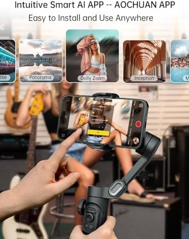 About this item [Powerful and Versatile 3-Axis Foldable Gimbal Stabilizer for Smartphones.]More powerful than any other smartphone gimbal, works well and compatible with iPhones and most Android phones.Smart XE phone gimbal is equipped with versatile compatibility of smartphones. Suitable for vlogging, live-streaming, selfie, hiking, and sports scenarios. One-Click video button effortlessly switchs between horizontal and vertical portrait mode for quick TikTok video or YouTube shorts. [Portable Foldable Design, Compact and Lightweigh]Palm-size 3-axis foldable gimbal with a net weight of only 0.78pounds, but can carry a 250-gram payload. Innovative focus wheel and zoom slide empowers you to shoot like a professional filmmaker photographer, even without complicated filmmaking skills, with adjustable focus speed and 3 brushless motors that increase power to stabilize most big-screen smartphones and create smooth and steady video shots. [All-day Long Video Creation] 2600mAh big-capacity battery enables up to 10 hours of continuous shooting, making it perfect for food photography, beauty live-streaming, vlogging, YouTube and TikTok video creation. One-click video button to effortlessly switch from horizontal mode to vertical portrait mode, rapidly taking your TikTok shots in just a flash. Born for filmmakers, vloggers, TikToker, IGTV, and YouTuber to shoot professional videography. [AI Face Track 4.0 ]Guestual Control in our Intuitive AOCHUAN APP: Easily take any kind of shooting mode, including panorama, wide-angle, cinematic and movie mode, live-streaming, time-lapse, and motion-lapse, and optimize your phone’s native camera settings. Tutorial videos available on our integrated app, product videos and YouTube channel. [SMART 7.0 Anti-Shake Smooth ]Equipped with the enhanced powerful brushless motors and 7.0 generation anti-shake algorithm for smooth and steady video output for professional videography. Start now to be a professional videographer with AOCHUAN SMART XE gimbal stabilizer. Package and support includes AOCHUAN SMART XE gimbal (phone not included), tripod, USB-C charging cable and user manual.