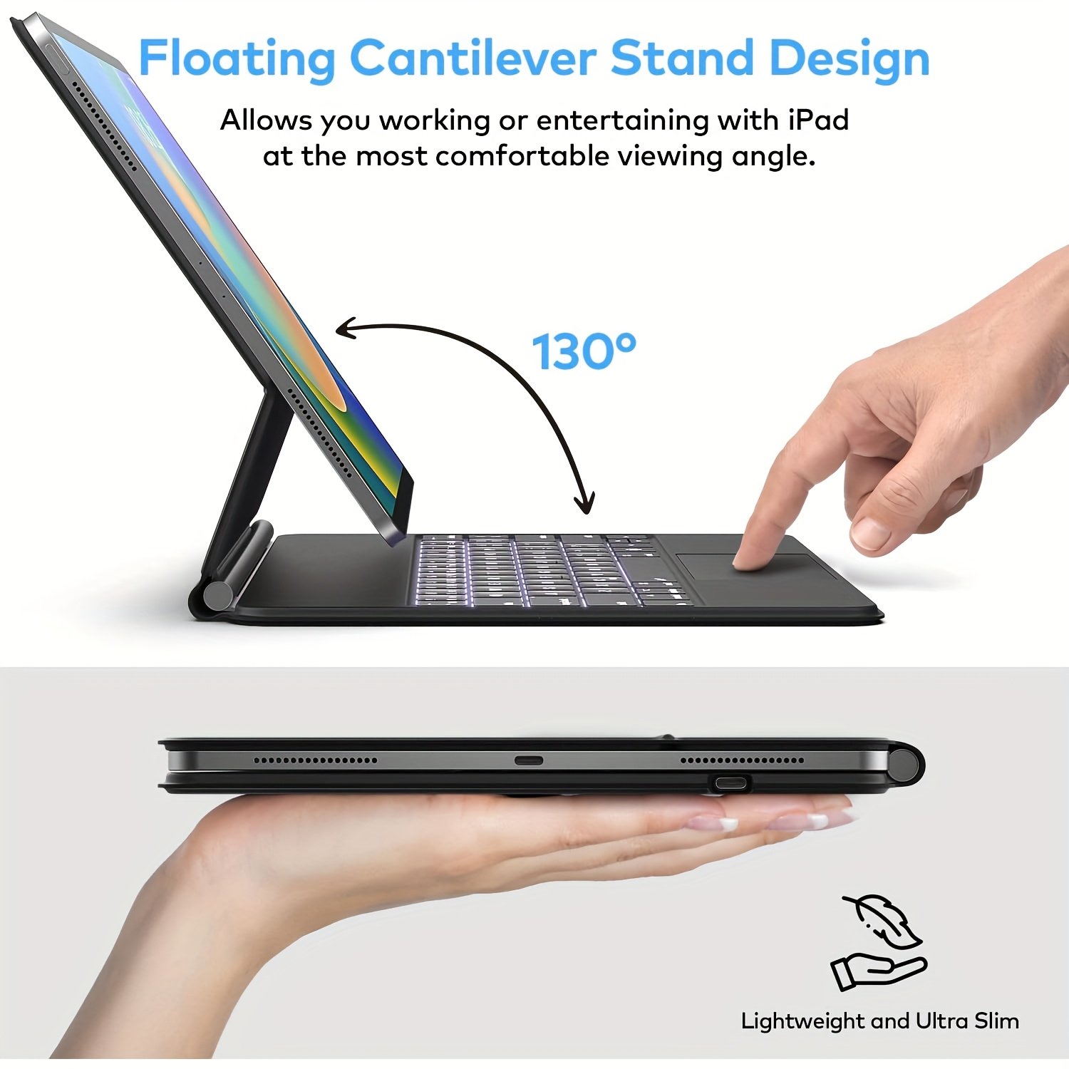 for iPad Pro 11 inch M4 2024 Wireless Magic Keyboard Case with RGB Backlit Smart Touchpad, QWERTY Layout, Magnetic Stand & Case – PU Leather Wireless Keyboard (-C, Long Battery Life) Compatible for iPad Pro 11 M4 2024