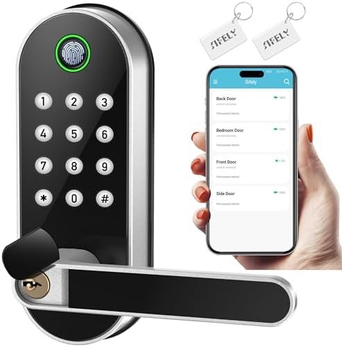 Be the first to review “Keyless Entry Fingerprint Smart Lock with Handle & Keypad Sifely Biometric Digital Electronic Lock with Code, Electric Deadbolt Door Knob for Front, Interior, Exterior & Bedroom Doors (Silver) –”