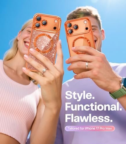About this item EXPRESS YOURSELF WITH PERSONALIZED DECOR: Designed exclusively for iPhone 17 Pro Max (6.9″), this phone case includes a wrist strap and glitter card so you can customize your phone to match your style—and make it easier to carry. The electroplated finish offers a radiant metallic shine, reflecting a brilliant life that never fades. Perfect for women and girls who want to showcase their unique personality METALLIC ELEGANCE & CRYSTAL-CLARITY: Featuring metallic accents along the edges, camera ring, and MagSafe ring, this clear case designed for iphone 17 promax combines style with durability. Designed using advanced German optical technology, it resists yellowing over time and keeps your 17 Pro Max looking brand new—all while showcasing its original beauty POWERFUL MAGNETIC PERFORMANCE, FAST CHARGING: Equipped with upgraded N52H ultra-thin magnets, this 17 Pro Max Phone Case is fully compatible with all MagSafe accessories. It ensures secure attachment and supports 25W original-speed wireless charging. Tested to provide 200% stronger magnetic hold than ordinary cases, it delivers faster, more convenient wireless charging for your iPhone 17 Pro Max ENHANCED PROTECTION & WITH 2X SSCREEN PROTECTORS: With a 3mm raised camera lip and 1mm elevated screen edges, your device stays protected from scratches and impacts. The precise full camera ring design safeguards your lenses without compromising photo quality. Plus, this magnetic case designed for iPhone 17 Pro Max includes two screen protectors to keep your display flawless against scratches, smudges, and daily wear COMPATIBILITY & RELIABLE SUPPORT: ONLY Designed for the 2025 iPhone 17 Pro Max (6.9 inch). We offer a lifetime warranty and 365-day replacement service. If you have any questions about this 17 Pro Max Case compatible with MagSafe, please reach out via the Amazon Message Center—our dedicated customer support team is always ready to help